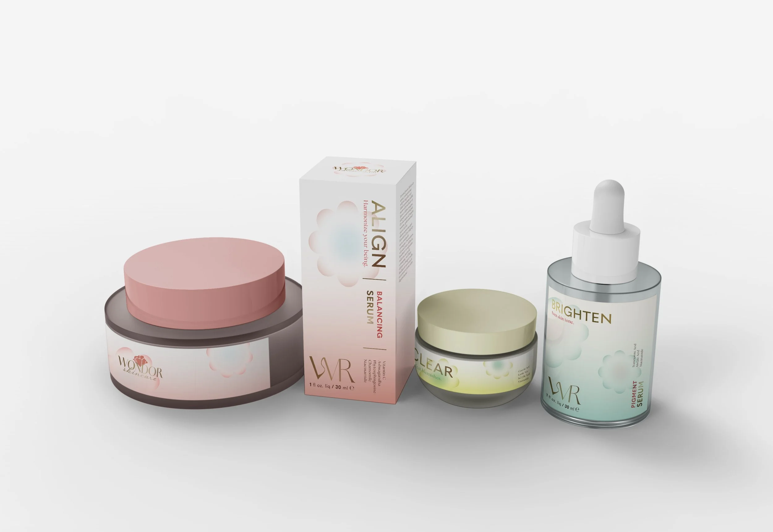 The skincare brand focuses on wellness and self-care with it’s science-backed formulas. Wondor makes skincare easy through calming design and approachable language that clearly communicate each product’s purpose.